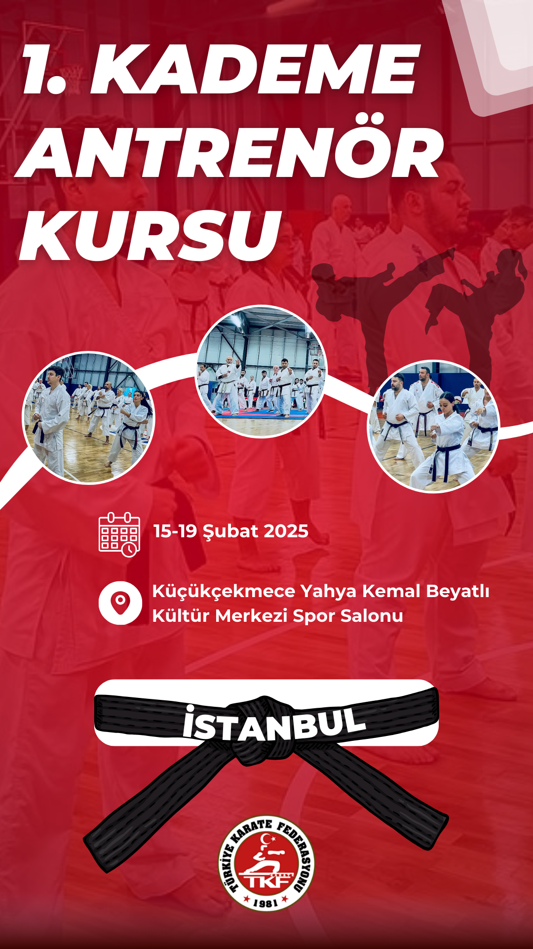 1. KADEME ANTRENÖR KURSU Kurs Tarihi: 15-19 Şubat 2025 İSTANBUL KÜÇÜKÇEKMECE YAHYA KEMAL BEYATLI KÜLTÜR MERKEZİ SPOR SALONU Ön Kayıt Tarihleri: 03-10 Şubat 2025 KURS PROGRAMI KURSİYER LİSTESİ Uygulama Kursuna ...