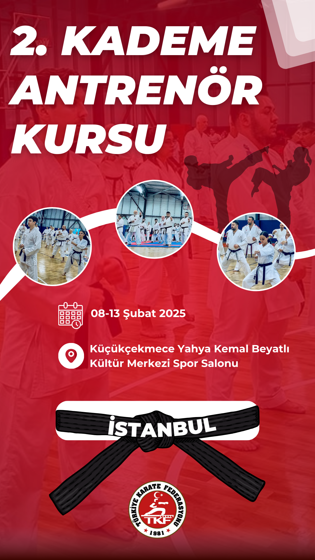 2. KADEME ANTRENÖR KURSU Kurs Tarihi: 08-13 Şubat 2025 İSTANBUL KÜÇÜKÇEKMECE YAHYA KEMAL BEYATLI KÜLTÜR MERKEZİ SPOR SALONU Ön Kayıt Tarihleri: 28 Ocak - 3 Şubat 2025 KURS PROGRAMI KURSİYER Uygulama Kursuna ...