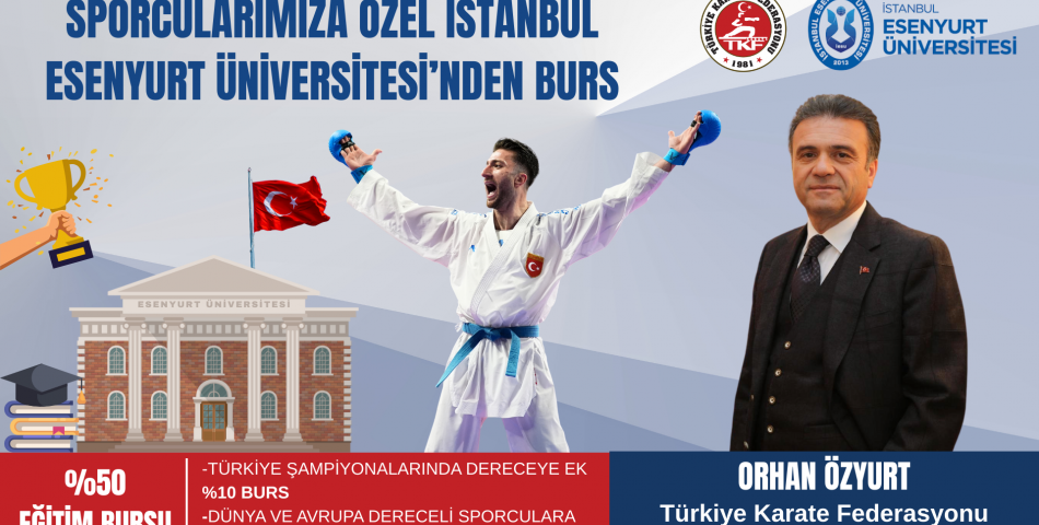 Ermenistan’daki Avrupa Şampiyonası zaferinin ardından, Türkiye Karate Federasyonu ile İstanbul Esenyurt Üniversitesi arasında burs odaklı iş birliği protokolü imzalandı. Sporculara %100’e varan burs imkânı sağlanacak.